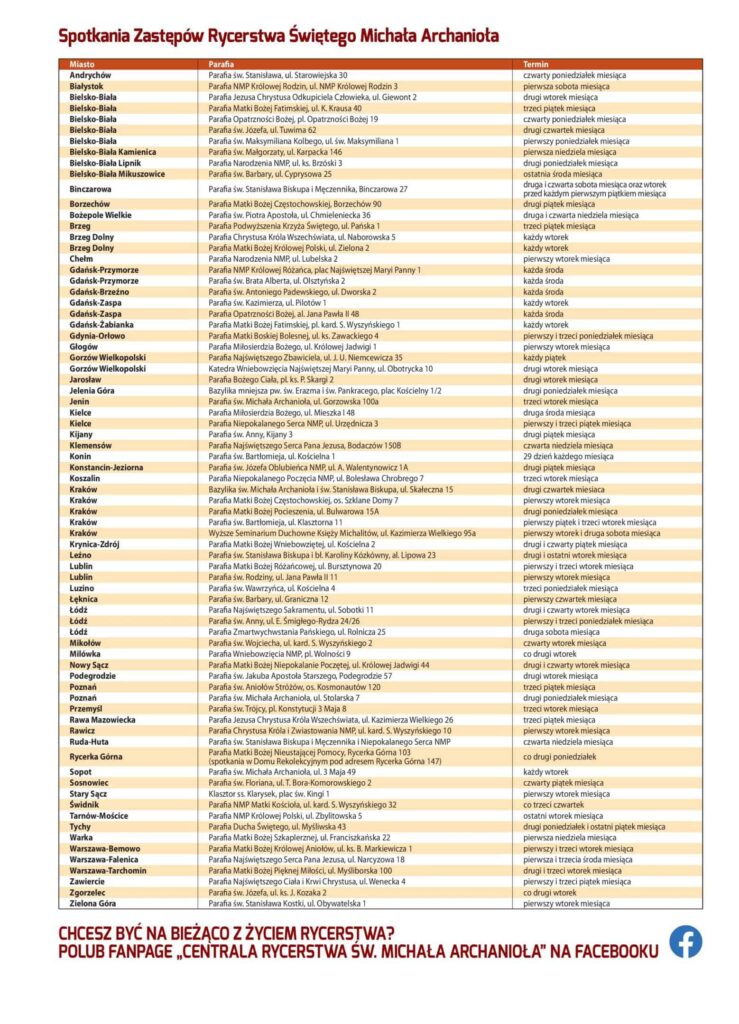 Grupy modlitewne powstające w parafiach nazywane są ZASTEPAMI RYCERSTWA św. Michała Archanioła. Przewodniczy im, wybrany spośród Rycerzy Animator.